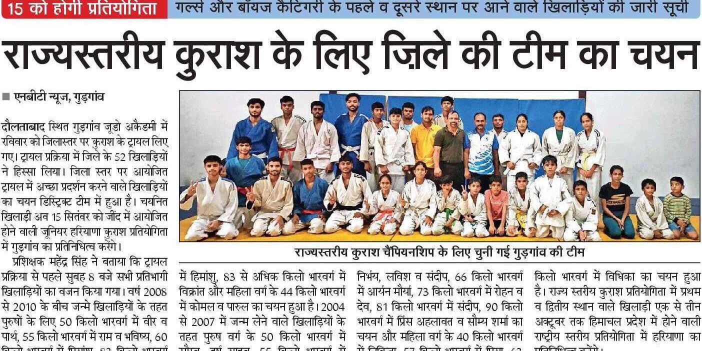 We are delighted to announce that Veer of Class VIII A and Sachin X A have been selected to represent our school at the Haryana State Kurash Championship for the year 2024-25. This is a remarkable achievement, and we are immensely proud of their dedication and passion for the sport.